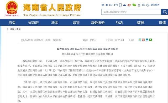 昨日晚间,海南省发布了《我省推出安居房产品房并全面实施产品房现房出售准则》,当全国各地都在想方设法为房企解困,下降购房门槛的时间,海南省可谓全国仅有一个逆势出台调控方针的省份。