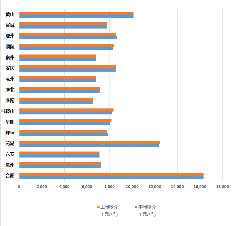 安徽省16个地市最新一周房价一览